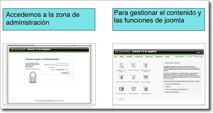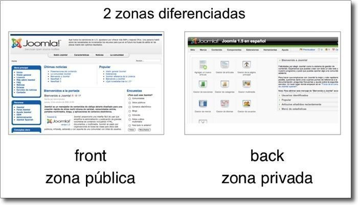 Joomla! dispone de dos zonas de uso diferenciadas: