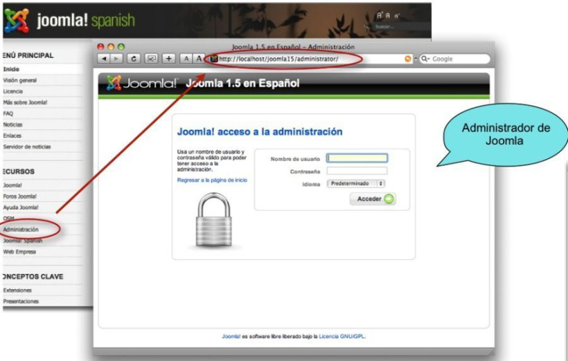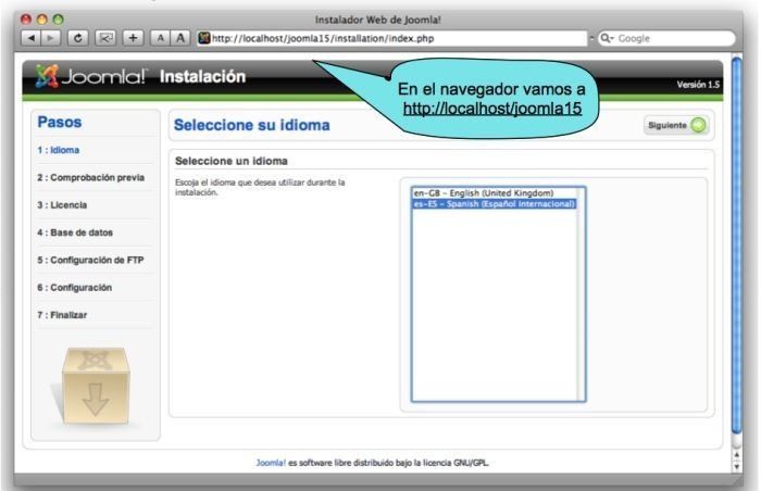 - http://localhost/joomla/ si trabajamos con EasyPHP o XAMPP