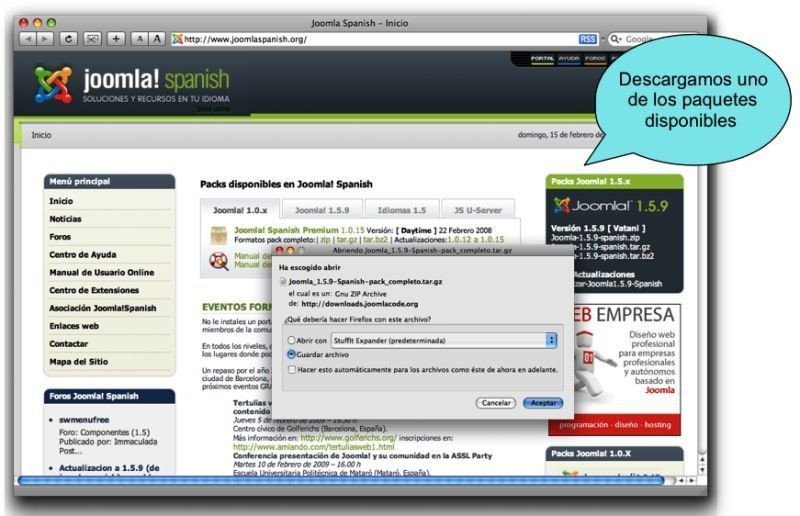 1. Descargar en nuestro equipo el paquete de instalación de Joomla!