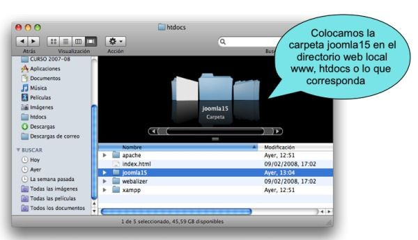 - En XAMPP la carpeta con los archivos de Joomla debe estar en .\xampp\htdocs\