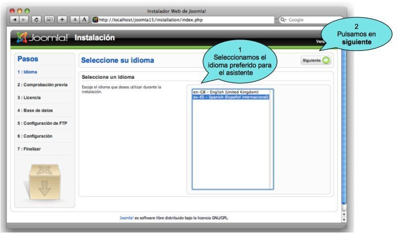 Si queremos que Joomla! se vea completamente en nuestro idioma (incluyendo las instrucciones del asistente de instalación) la única opción por el momento es descargar e instalar la versión que distribuye JoomlaSpanish.