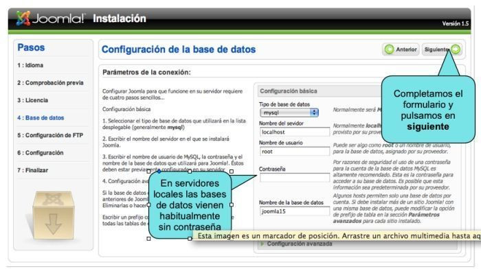 Antes de instalar Joomla necesitamos crear esa base de datos y establecer los datos de acceso correspondientes.