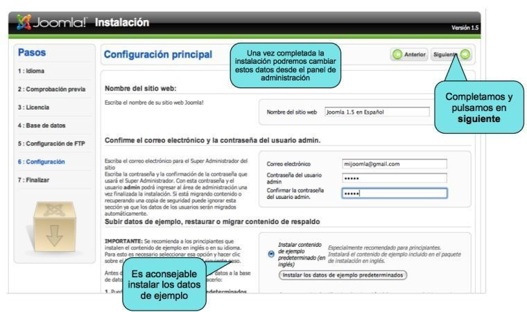 En este paso pulsaremos en Instalar los datos de ejemplo
